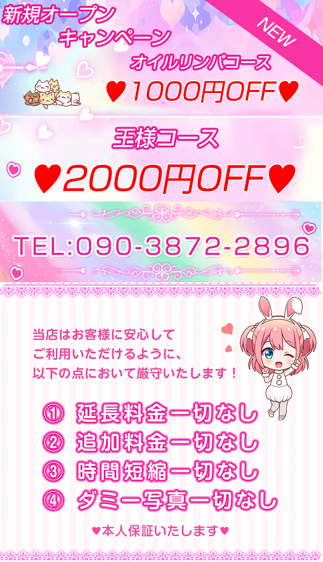私たちはそんな日々お疲れの貴方様に尽くし、疲れを取り除くべく日々腕に磨きをかけております!!当店自慢のマッサージ技術で是非、気持ち良くなっていただければ幸いでございますそれが私たちの喜びです!